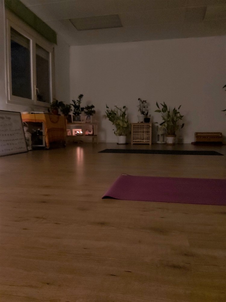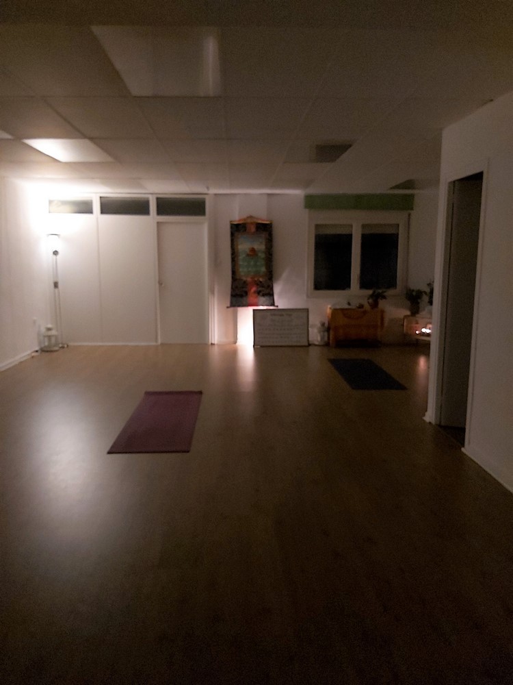 Yo me pongo a practicar junto con los demás alumnos y la profesora se predispone para velar de nuestra práctica y asistirnos. A las 7:30 cantamos el mantra inicial todos juntos y de ahí en adelante la práctica de cada cual fluirá en silencio hasta llegar a su final sólo acompañada por los susurros casi imperceptibles de las asistencias y los ajustes. Luego, tras su proprio Shavasana, paulatinamente l@s alumn@s se van, hasta que la sala vuelve a quedar vacía pero aún impregnada por la energía generada a lo largo de las horas de práctica.