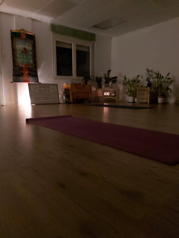 Cada mañana a las 6:45 @ashtangayogaprem se despierta bajo la luz suave de un par de lámparas de noche y unas cuantas velitas colocadas estratégicamente para iluminar justo el perímetro del local.